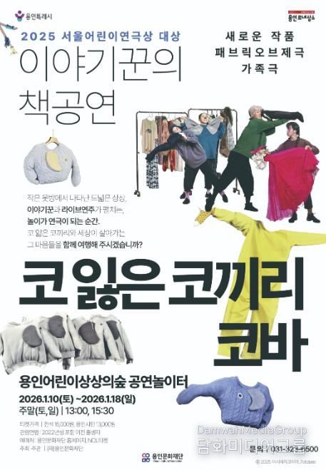 시민행정신문 기자 | 용인문화재단은 오는 2026년 1월 10일부터 1월 18일까지 용인어린이상상의숲 공연놀이터에서 패브릭오브제극 '코 잃은 코끼리 코바'를 선보인다.