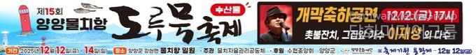 물치항 어촌계 관계자는 “도루묵 축제에서는 다양한 도루묵 요리와 함께 공연 및 체험 프로그램을 즐기며 추운 겨울도 따뜻하게 보낼 수 있을 것”이라며 “많은 분들이 방문하셔서 신선한 도루묵의 맛과 함께 양양 겨울 바다만의 정취를 느껴보시길 바란다”고 전했다.