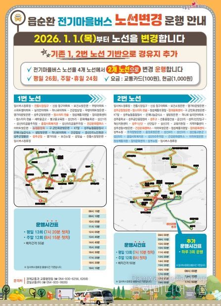 【'26년도 달라지는 교통 : 전기마을버스 노선변경 운행】