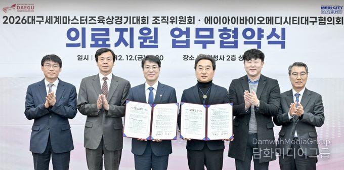 이날 협약식에는 김정기 대구광역시장 권한대행 행정부시장 겸 조직위원장, 민복기 AI 바이오·메디시티대구협의회장, 진기훈 조직위 사무총장 등이 참석해, 대회의 안전한 경기 환경 조성과 신속한 의료 대응 체계 구축을 위해 상호 협력하기로 뜻을 모았다.