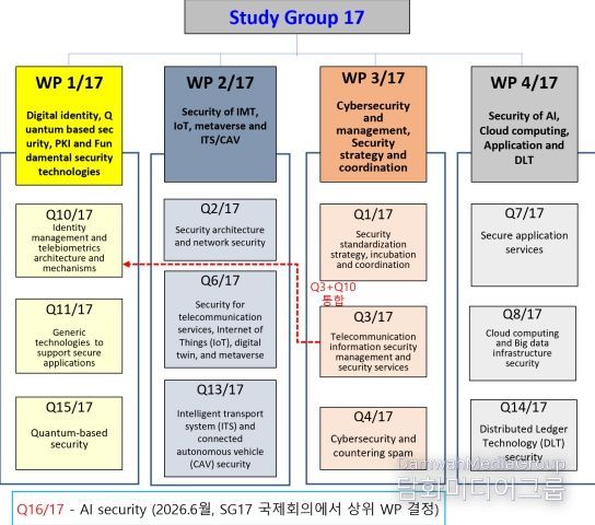 한편, 정보보호연구반이 인공지능 자체 보안, 생성형 AI 모델, 딥페이크 탐지 및 파인튜닝 보안 등 전반적인 인공지능 보안 기술을 전담할 연구과제(Question 16)의 잠정 신설에 합의함에 따라, 우리나라는 에이전틱 및 피지컬 AI 보안 등 신흥 분야까지 연구 범위를 확대하여 새로운 리더십 확보를 목표로 적극 참여할 예정이다. 해당 연구과제는 2026년 1월 표준화자문그룹(TSAG) 국제회의에서 심의될 예정이고, 2026년 6월경 차기 SG17 국제회의에서 최종 승인될 예정이다.