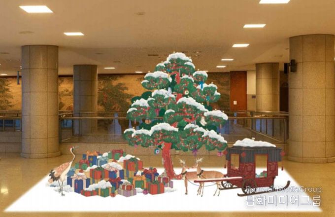 붉은 줄기의 우람한 소나무에 눈을 얹고, 댕기, 버선, 복주머니, 노리개 등 전통 양식의 소품으로 장식해 한국적인 느낌으로 탄생한 '십장생도' 크리스마스 트리 앞에는, 루돌프처럼 코가 빨갛게 물든 사슴과 함께 썰매로 재해석한 임금의 가마인 가교(駕轎)를 배치했다. 주변에는 전통 보자기로 포장한 선물 상자가 가득 쌓여 있고, 이를 한 마리의 학이 지켜보고 있어 풍성하고 행복한 연말 분위기를 더한다. 동서양의 문화가 어우러진 이 특별한 크리스마스 트리는 내년 1월 말까지 박물관 2층 로비에서 만나볼 수 있다.