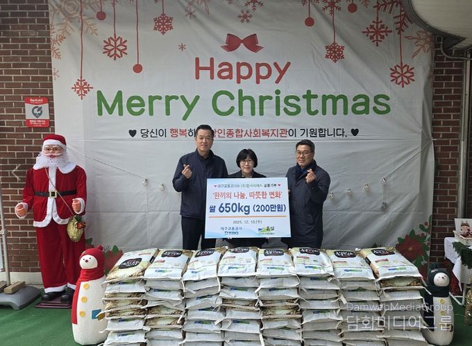 시민행정신문 강갑수 기자 | 대구교통공사는 ㈜한국피제스와 공동으로 지난 12월 10일, 달서구에 위치한 상인종합복지관에서 지역 결식아동과 소외계층을 위한 쌀 650kg를 전달했다.