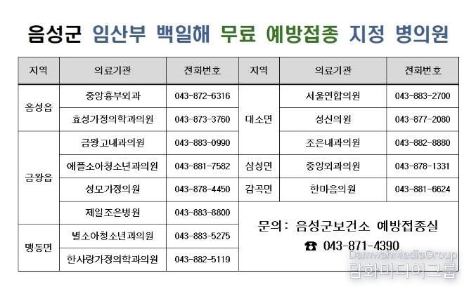 군은 지난 1일 ‘음성군 예방접종 지원에 관한 조례’가 음성군의회 본회의를 통과함에 따라 제도적 기반을 마련했다고 밝혔다.