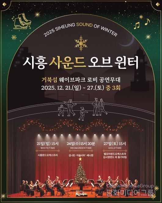 빙판 위에서 몸을 녹인 뒤에는 따뜻한 음악으로 한 해를 마무리할 수 있다. 시는 거북섬 스케이트장 개장을 기념해 지역 문화예술단체와 함께 ‘2025 시흥 사운드 오브 윈터’를 개최한다. 12월 21일부터 27일까지 웨이브파크 로비 공연무대에서 총 3회에 걸쳐 다양한 공연이 펼쳐진다.