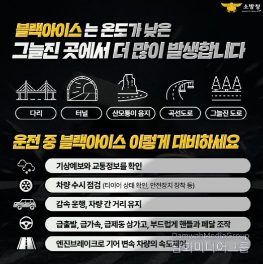 예방안전과장 장임수는 “블랙아이스는 잘 보이지 않아 방심하기 쉽지만, 한순간의 부주의가 큰 사고로 이어질 수 있다”며 “군민 모두가 겨울철 안전수칙을 철저히 지켜 안전한 겨울을 보내길 바란다”고 전했다.