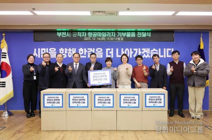 시민행정신문 강갑수 기자 | 부천시는 지난 16일 직원들이 보유한 항공마일리지를 활용해 물품을 구매하고 이를 지역 복지시설에 기부하는 연말 나눔 행사를 열었다. 이번 행사는 공적 항공마일리지를 사회공헌 활동에 활용하고, 연말을 맞아 지역사회 나눔 문화 확산에 기여하기 위해 추진됐다.