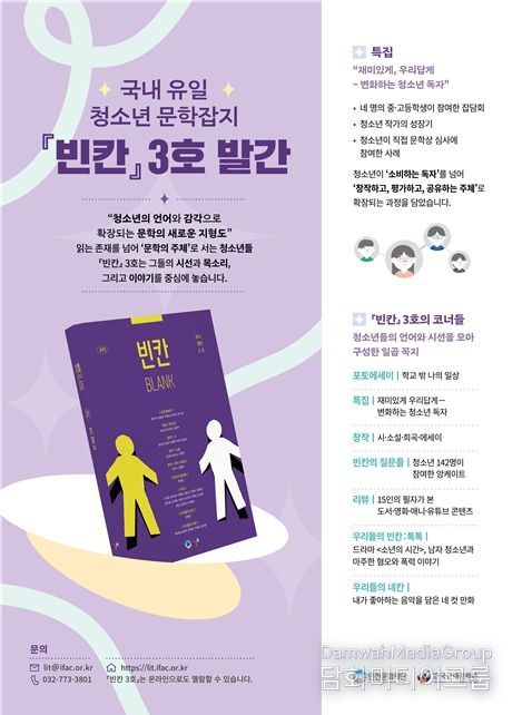 시민행정신문 강갑수 기자 | 인천문화재단 한국근대문학관은 국내 유일의 청소년 문학잡지 [빈칸] 3호를 발간했다.