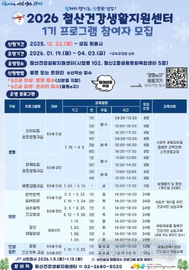 센터는 이 성과를 바탕으로 오는 22일부터 선착순으로 ‘2026년 건강생활 프로그램’ 참가자를 모집한다. 신청은 모집 마감 시까지 방문 또는 광명이(e)지 누리집에서 가능하다.