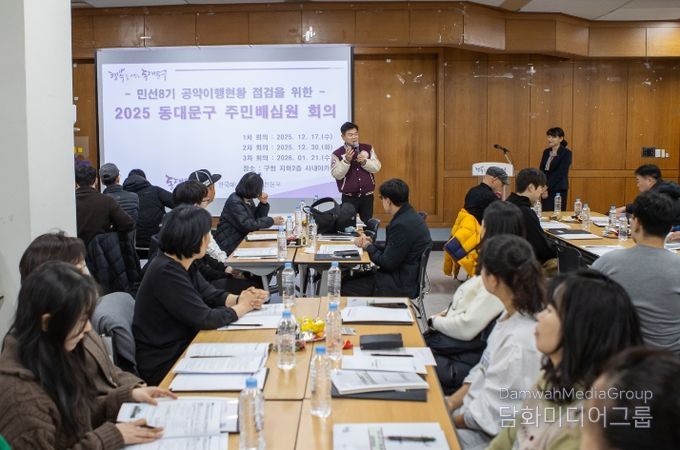 동대문구는 17일 구청 지하 2층 사내아카데미에서 ‘2025년 동대문구 주민배심원단’ 1차 회의를 열었다고 밝혔다. 주민배심원단은 동대문구와 한국매니페스토실천본부가 공동 운영하며, 공약 이행 현황을 보다 객관적이고 투명하게 점검하기 위해 마련됐다.