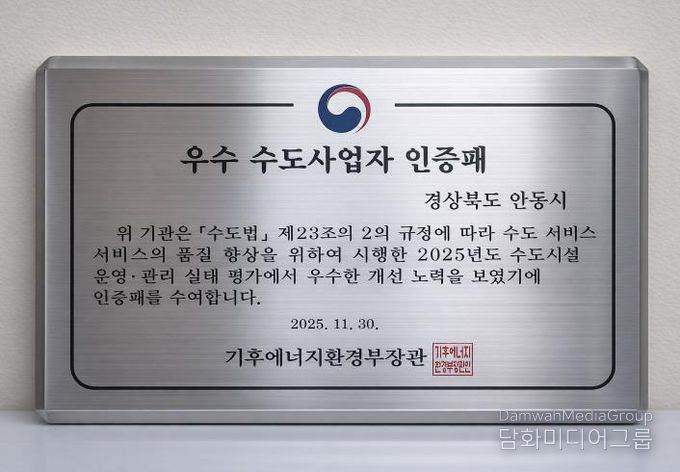 시민행정신문 강갑수 기자 | 안동시는 기후에너지환경부 주관 ‘2025년 수도시설 운영관리 실태 평가’에서, 수도시설 운영 및 관리 역량의 우수한 개선 노력을 인정받아 ‘발전상’을 수상했다고 12월 18일(목) 밝혔다.