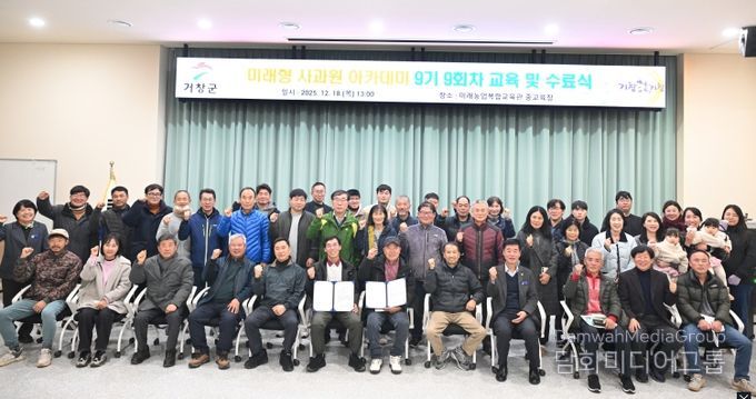 시민행정신문 강갑수 기자 | 거창군은 지난 18일 농업기술센터 미래농업복합교육관 2층 중교육장에서 49명의 교육생이 참석한 가운데 ‘미래형 사과원 아카데미 9기’ 수료식을 개최했다.