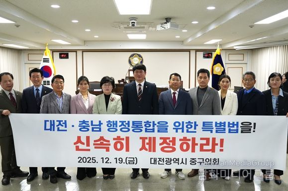 대전 중구의회는 결의문을 통해 ▲이미 제출된 특별법의 조속한 심의·의결 ▲형식적 논의가 아닌 실질적인 행정통합 실행 방안 마련 ▲재정 분권과 자치 권한 확대를 포함한 실질적 특례 제공을 강력히 요구했다.