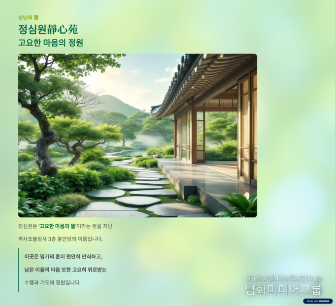 ‘불자 전용’이라는 원칙은 지키되, 문은 누구에게나 열려 있다. 벽사초불정사는 종교적 배타성이 아닌 불교적 품격과 질서를 기준으로 공간을 운영한다. 장엄하되 과시하지 않고, 고요하되 닫히지 않은 도량. 이곳에서 봉안은 추모를 넘어 삶의 방향을 다시 묻는 수행이 된다.