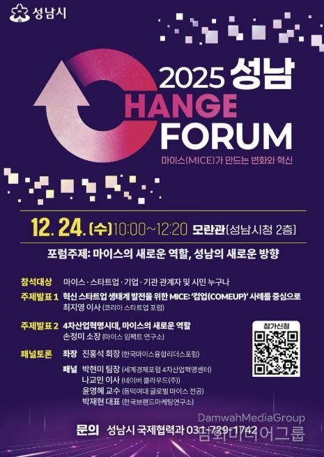 시민행정신문 기자 | 성남시는 오는 12월 24일 오전 10시 성남시청 모란관에서 ‘2025 성남 체인지 포럼(CHANGE Forum)’을 개최한다.