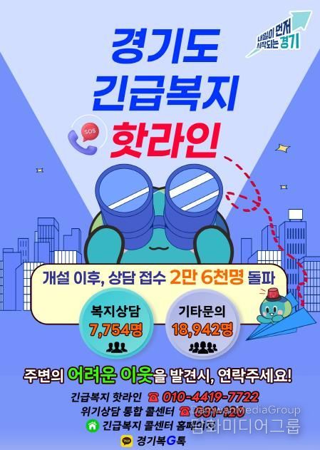 경기도가 2022년 8월부터 위기도민 발굴을 위해 ‘긴급복지 핫라인’을 운영한 결과 3년 3개월 만에 상담 접수 2만 6천 명을 넘어섰다.