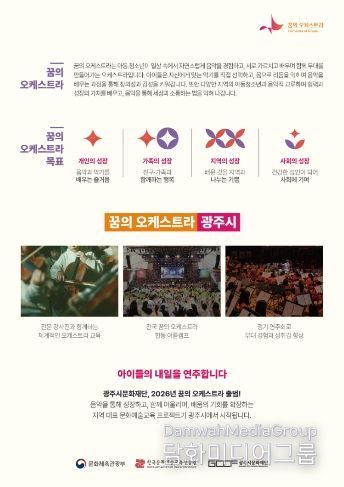 재단은 이를 바탕으로 내년 상반기 광주시 아동·청소년 약 50명을 단원으로 모집해 오케스트라 교육을 운영할 예정이며, 향상음악회, 정기연주회, 현장 체험학습 등 체계적인 프로그램을 통해 지속 가능한 음악교육 기반을 구축할 계획이다.
