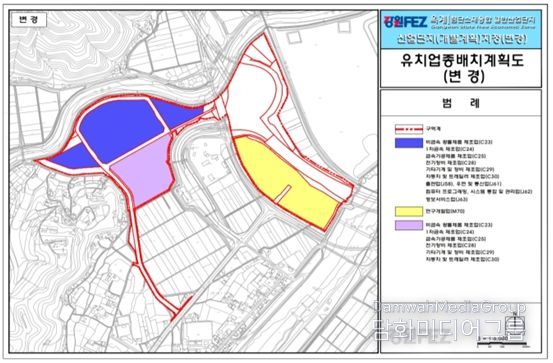 강원경제자유구역청은 다양한 첨단산업의 입주 촉진을 위해 업종 특례지구로 지정된 구역에 대해 12월 23일 경제자유구역 개발계획 변경을 추진하여 유치 업종을 기존 7개에서 11개로 확대했다.