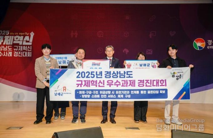 시민행정신문 강갑수 기자 | 남해군이 19일 경남도청에서 진행된 ‘2025년 경상남도 규제혁신 우수과제 경진대회’에서 규제혁신 우수사례 분야에서 우수상을 수상하는 영예를 안았다.