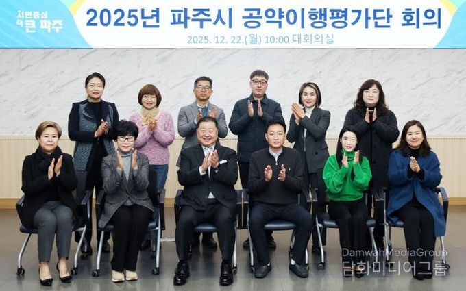 회의 결과, 파주시는 2025년 완료 공약 22건을 포함해, 민선 8기 공약 144개 중, 총 115건을 완료해 2025년 12월 기준 79.86%의 공약 이행률을 달성했다. 이는 같은 기간 민선 7기 전국 공약 이행률 71.72%(觙. 12. 기준)를 크게 웃도는 수치다.