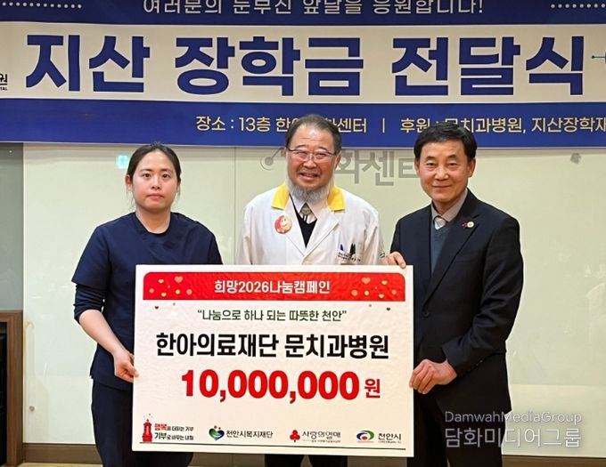 시민행정신문 기자 | (재)천안시복지재단은 지난 22일 한아의료재단 문치과병원이 학업장려금 3,000만 원을 기탁했다고 밝혔다.