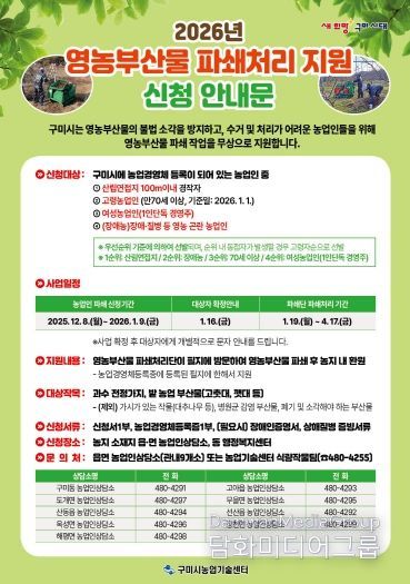 시민행정신문 김학영 기자 | 구미시는 영농부산물 불법소각으로 인한 미세먼지 발생과 산불 위험을 줄이기 위해 ‘2026년 영농부산물 안전처리 지원사업’을 본격 추진한다. 이번 사업은 '미세먼지 저감 및 관리에 관한 특별법'과 '구미시 영농부산물 안전처리 지원 조례'에 근거해 시행되며, 영농부산물 파쇄 작업을 무상으로 지원해 농업인의 작업 부담을 낮추고 친환경 농업환경을 조성하는 데 목적이 있다.