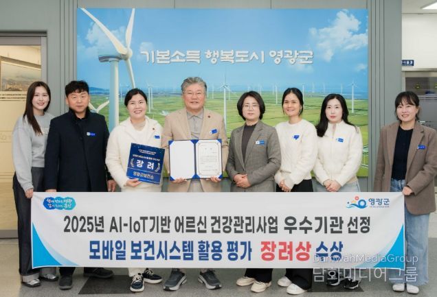 시민행정신문 강갑수 기자 | 영광군은 12월 18일 한국사회보장정보원 주관으로 서울PJ호텔에서 열린 2025년 AI-IoT기반 어르신 건강관리사업 모바일 보건소 시스템 활용 평가 성과대회에서 장려상을 수상하며 2년 연속 우수기관으로 선정됐다.