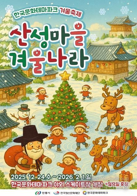 시민행정신문 강갑수 기자 | 안동시와 한국정신문화재단은 한국문화테마파크에서 12월 24일부터 2026년 2월 1일까지 크리스마스와 겨울을 주제로 한 ‘산성마을 겨울나라’ 행사를 한국문화테마파크 일원에서 개최한다고 밝혔다.