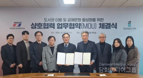 시민행정신문 기자 | 경남대표도서관(관장 강순익)은 23일 오전 11시 경남대표도서관 회의실에서 경상남도공예협동조합(이사장 허일)과 도민의 공예문화 향유 기회 확대 및 도서관 이용 활성화를 위한 업무협약을 맺었다고 밝혔다.
