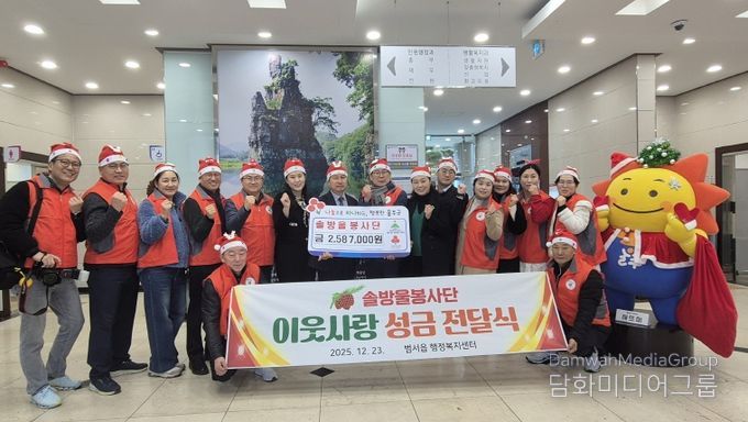 이해준 솔방울봉사단장은 “회원들이 작은 정성을 하나둘 모아 마련한 성금이 우리 이웃들에게 조금이나마 보탬이 되길 바란다”며 “앞으로도 지역사회의 그늘진 곳을 살피고, 나눔과 봉사를 실천하는 솔방울봉사단이 되도록 노력하겠다”고 말했다.