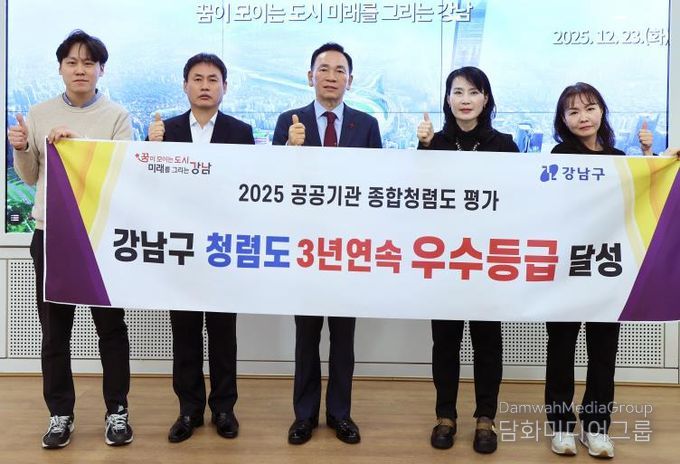 시민행정신문 강갑수 기자 | 꿈이 모이는 도시, 미래를 그리는 강남구가 국민권익위원회가 주관한 ‘2025년 공공기관 청렴도 평가’에서 3년 연속 ‘종합청렴도 우수등급’을 받았다.