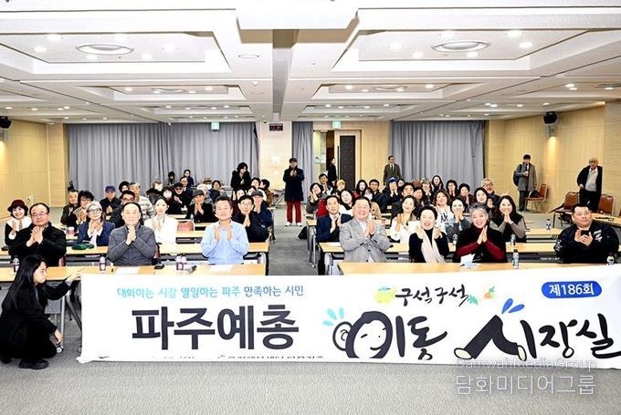 186번째를 맞이한 이번 이동시장실에서는 파주예총 이상주 지회장을 비롯한 파주예총 산하 8개 지부 회원 40여 명이 참석해 지역 예술인들이 현장에서 체감하는 주요 건의사항과 정책 개선방안에 대해 의견을 나눴다.