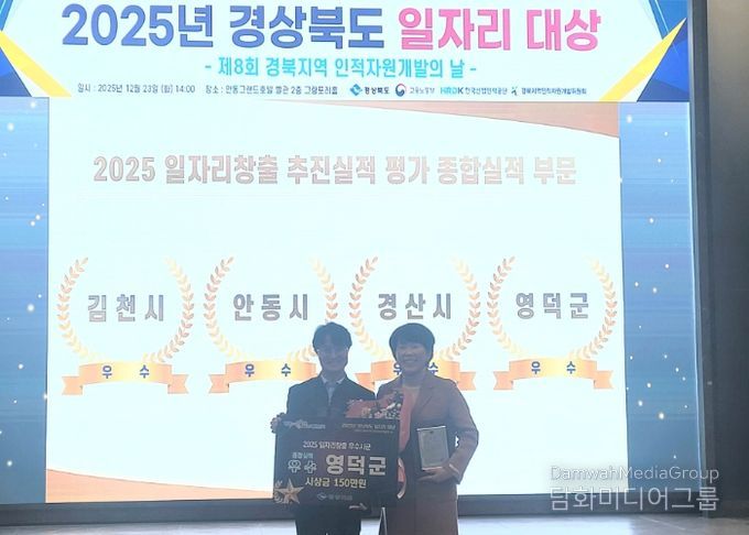 시민행정신문 강갑수 기자 | 영덕군은 일자리 사업의 중요성을 알리고 우수사례를 공유하기 위해 지난 23일 열린 2025 경상북도 일자리 창출 추진 실적 평가에서 우수상을 받았다.