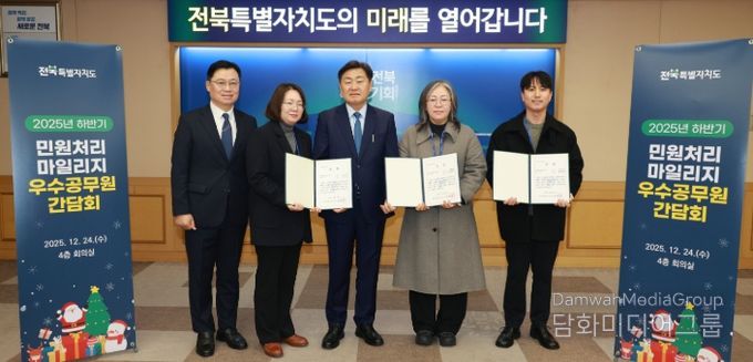 시민행정신문 강갑수 기자 | 전북특별자치도가 24일 '2025년 하반기 민원 처리 우수직원 시상 및 간담회'를 개최하고, 신속하고 성실한 민원 업무 수행으로 높은 평가를 받은 직원들을 격려했다.