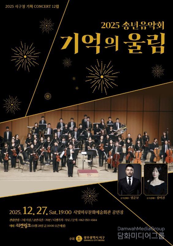 시민행정신문 기자 | 광주광역시 서구는 2025년 한 해를 마무리하며 오는 27일 오후7시 서빛마루문화예술회관에서 송년음악회 ‘기억의 울림’을 개최한다.