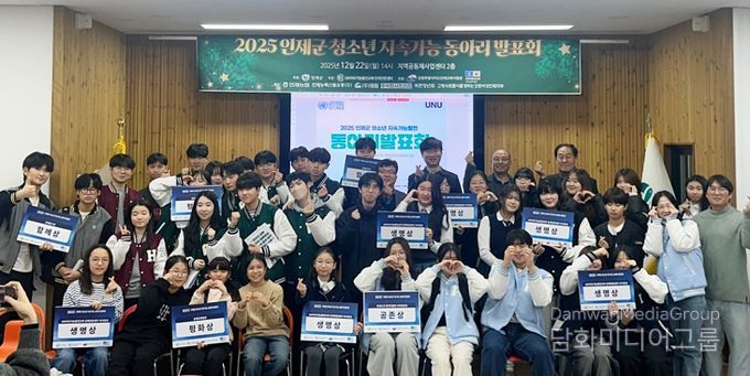 시민행정신문 강갑수 기자 | 인제군이 주최하고 UN지속가능발전교육 인제전문센터가 주관한 ‘2025 인제군 청소년 지속가능발전 동아리 발표회’가 지난 22일 인제군 지역공동체사업센터에서 열렸다.