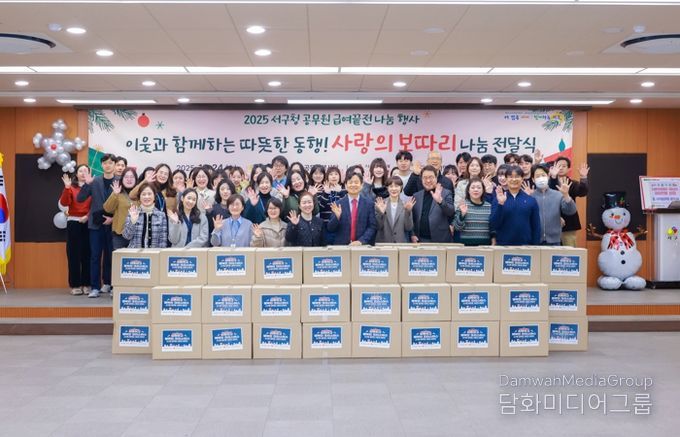 서구청은 연말연시를 맞아 공무원 급여 끝전 기부를 통해 마련한 성금으로 지역 내 한부모 가정과 조손가정을 대상으로 나눔 행사를 진행했다고 밝혔다.