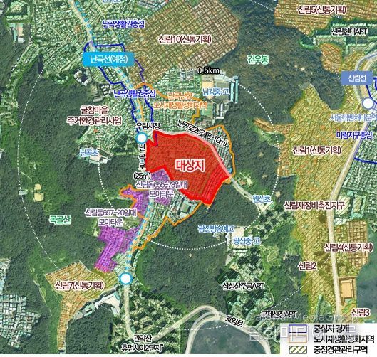 서울시는 신림8구역을 난곡 생활권의 중심 주거지로 육성하기 위해 자연환경과 생활권 기능, 교통 여건을 종합 고려한 공간계획을 수립했다.