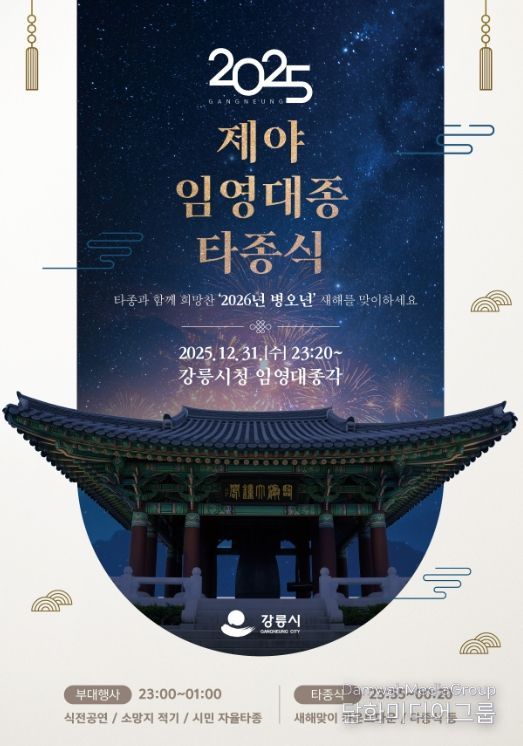 시민행정신문 강갑수 기자 | 강릉시는 2025년 을사년 한 해를 되돌아보고 2026년 병오년 새해를 희망차게 맞이하고자 오는 31일 시민과 함께하는'제야 임영대종 타종식'을 개최한다.