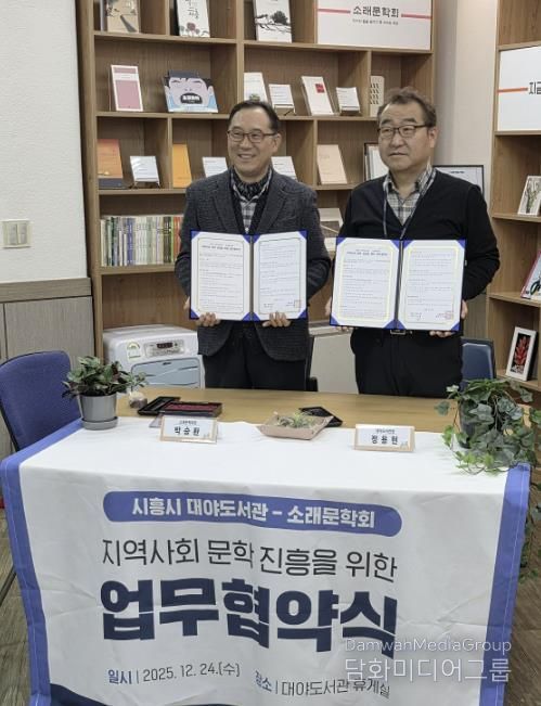 시민행정신문 강갑수 기자 | 시흥시 대야도서관은 지역 문학단체인 소래문학회와 지난 12월 24일, 대야도서관 휴게실에서 지역 문학 진흥 및 독서문화 확산을 위한 업무협약을 체결했다.