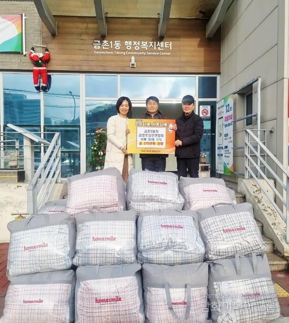 시민행정신문 강갑수 기자 | 파주시 금촌1동은 지난 24일 금촌5일장 금정로 상인연합회로부터 375만 원 상당의 이불 30채를 기탁 받았다고 밝혔다.