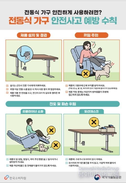 시민행정신문 강갑수 기자 | 산업통상부 국가기술표준원은 전동식 가구로 인한 안전사고를 사전 예방하기 위해 안전 사용 수칙을 안내하는 홍보 캠페인을 실시한다.