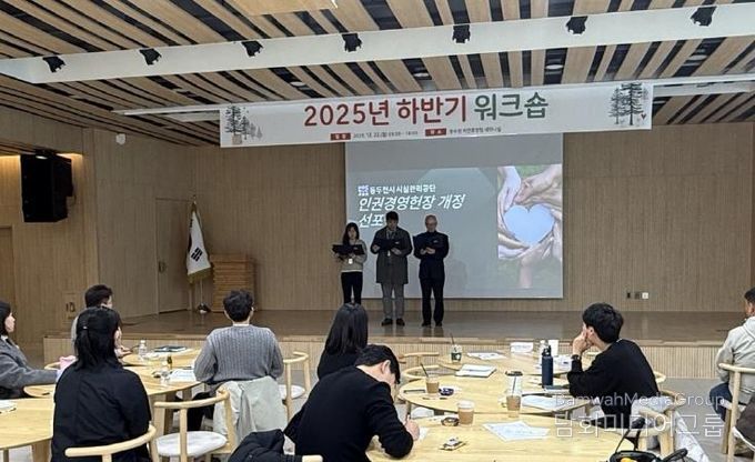 시민행정신문 강갑수 기자 | 동두천시 시설관리공단은 지난 22일 동두천 자연휴양림 세미나실에서 열린 2025년 하반기 워크숍에서 인권경영 헌장 개정 및 선포식을 개최했다고 밝혔다.