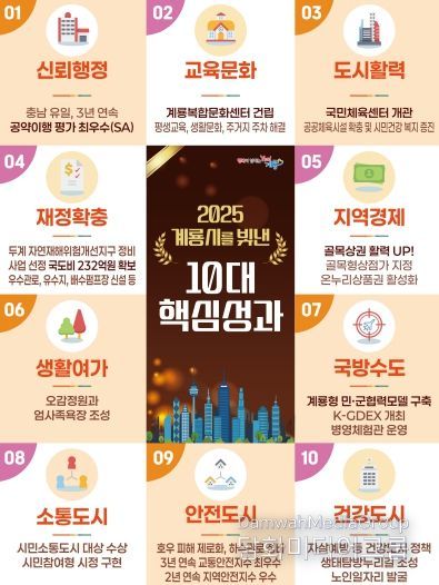 시민행정신문 강갑수 기자 | 계룡시는 시민 참여와 공정한 평가를 통해'2025 계룡시를 빛낸 10대 성과'를 최종 선정·발표했다.
