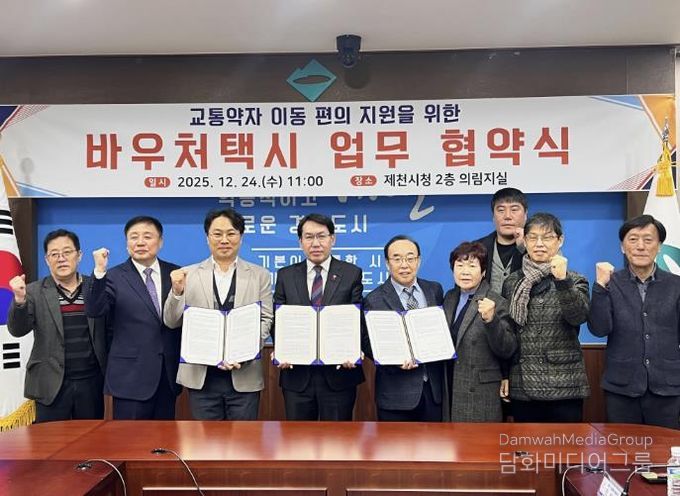 시민행정신문 강갑수 기자 | 제천시는 지난 24일 교통약자의 이동권 보장과 이동 편의 증진을 위해 청풍호콜센터, ㈜티머니 모빌리티와 바우처택시 업무협약을 체결했다.