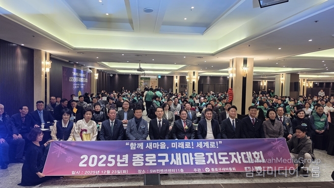 시민행정신문 김동현 기자 | 종로구 지역공동체 발전을 이끌어온 새마을지도자들이 한자리에 모여 지난 한 해의 성과를 나누고 새로운 도약을 다짐했다. 종로구새마을회(회장 박내춘)는 12월 23일 오후 2시 30분, 종로구 지봉로에 위치한 SW컨벤션센터에서 「2025 종로구 새마을지도자대회」를 성황리에 개최했다.