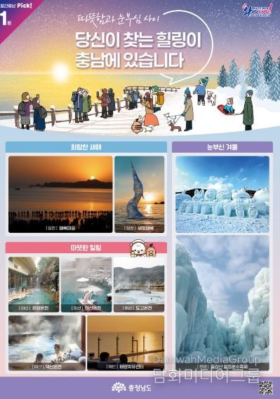 월간 충남 1월호에는 추위로 움츠러들기 쉬운 겨울철에 몸과 마음을 따뜻하게 채워줄 수 있는 쉼의 여행지와 겨울의 매력을 만끽할 수 있는 도 대표 관광 명소를 담았다.