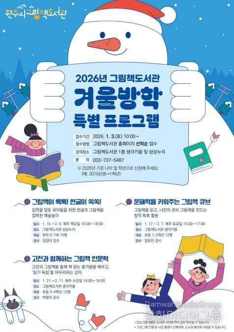 시민행정신문 강갑수 기자 | 원주시 그림책도서관은 겨울방학을 맞은 어린이를 대상으로 특별 프로그램을 운영한다.