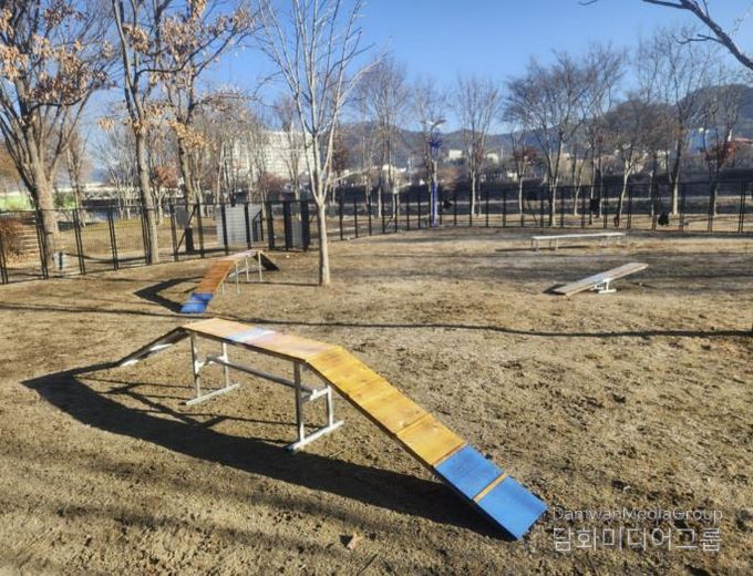 놀이터에는 반려견의 안전한 활동을 위해 이동식 펜스를 설치해 이용 공간을 분리했으며, 반려견의 활동성과 습성을 고려한 놀이기구를 배치해 자유롭게 뛰어놀 수 있는 환경을 조성했다. 또한 보호자를 위한 그늘막과 벤치 등 편의시설을 함께 설치해 휴식과 관람이 가능하도록 했다.