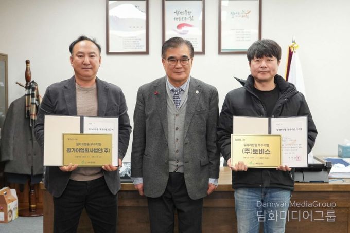 시민행정신문 이세훈 기자 | 서천군은 지난 26일 고용 확대와 일자리 창출에 기여한 관내 우수기업 2곳을 ‘일자리창출 우수기업’으로 선정하고 인증서와 현판을 수여했다.